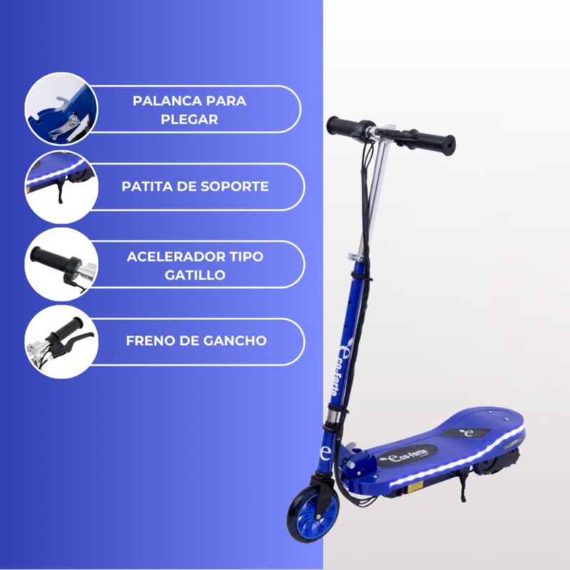 Scooter Patín Eléctrico Eco-forte Con Luces Cd05 120w 12km/h Azul