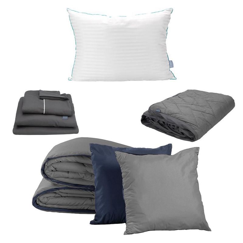 HogarBlancosCoordinados de camaSet de Edredón Individual Doble Vista Couzy Azul Marino-Gris + Sábanas Royal Gris + Protector Lux + Almohada Royal RGH