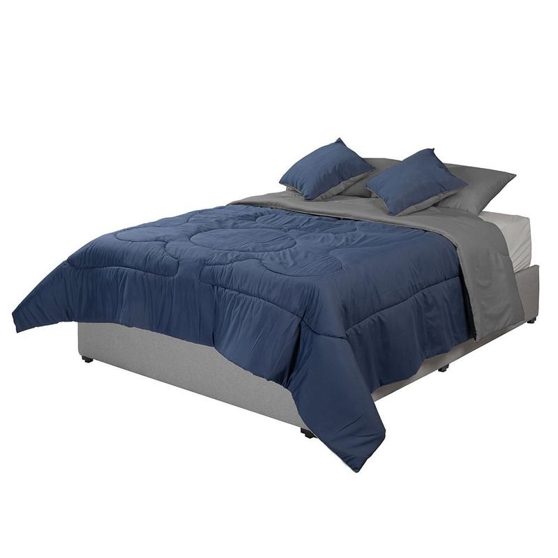 Set de Edredón Queen Size Doble Vista Couzy Azul Marino-Gris + Sábanas Royal Gris RGH