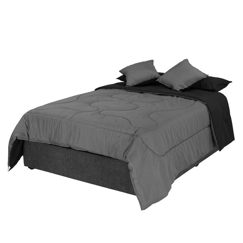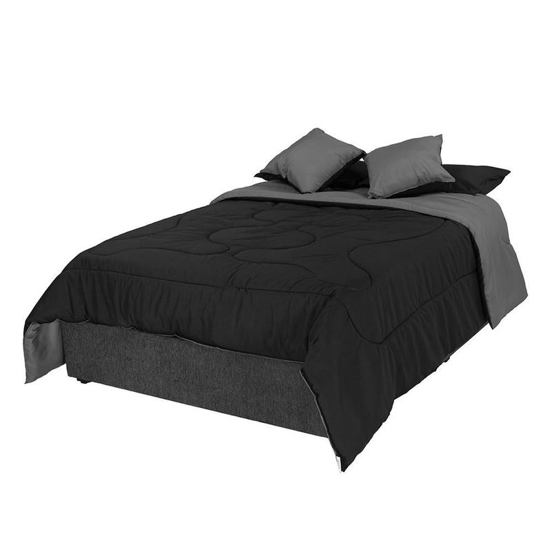 Set de Edredón Queen Size Doble Vista Couzy Negro-Gris + Protector Cloud + Sábanas Softy Platino + Almohada 2 Pack RGH