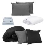 HogarBlancosCoordinados de camaSet de Edredón Queen Size Doble Vista Couzy Negro-Gris + Protector Cloud + Sábanas Softy Platino + Almohada 2 Pack RGH