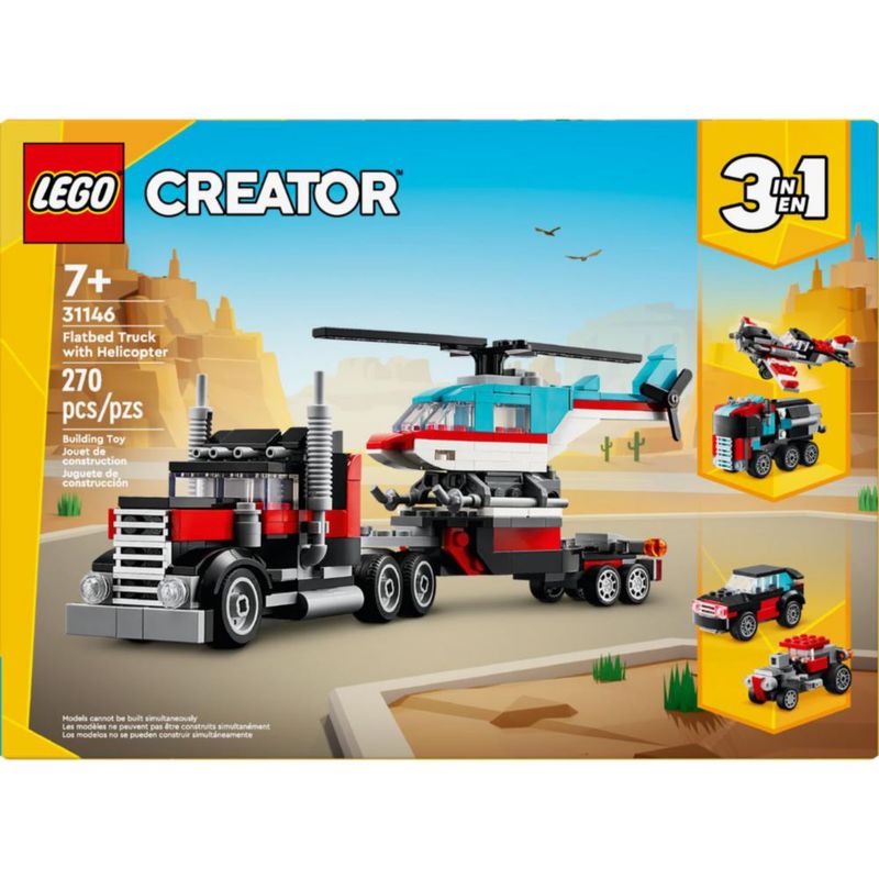 Set LEGO Creator 3 en 1 Camión Plataforma Con Helicóptero 270 Piezas COLOR MULTICOLOR Desde 7 Años Modelo 31146