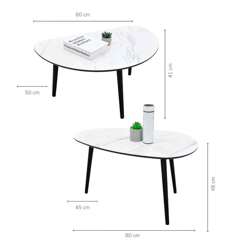 Set Mesas de Centro Top Living de 2 Piezas Con Superficie Estilo Mármol Color Blanco