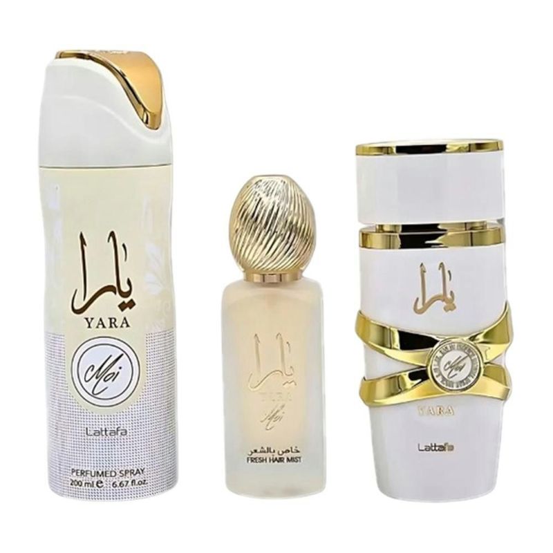 SETG LATTAFA YARA MOI 3PZS 100ML EDP SPRAY/HAIR MIST 50ML SPRAY/DESODORANTE 200ML SPRAY