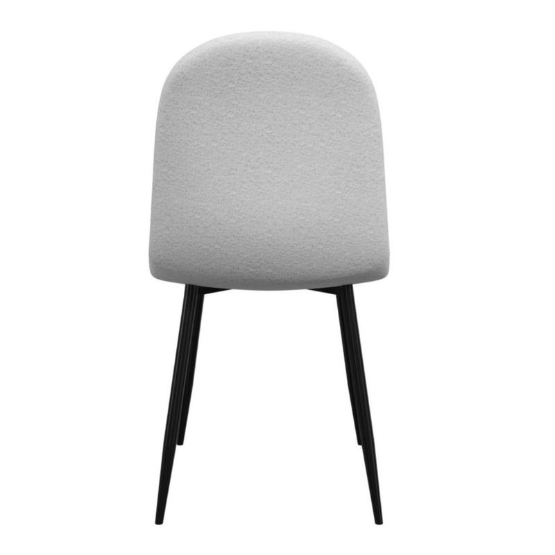 Silla de Comedor Blanca con Asiento y Respaldo en Tela Bouclé. Estructura de Metal y Patas Negras