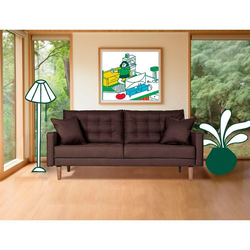 Sofá Cama Makora Encore Con Memory Foam, Color Chocolate, Lino Respaldo Reclinable De 3 posiciones.