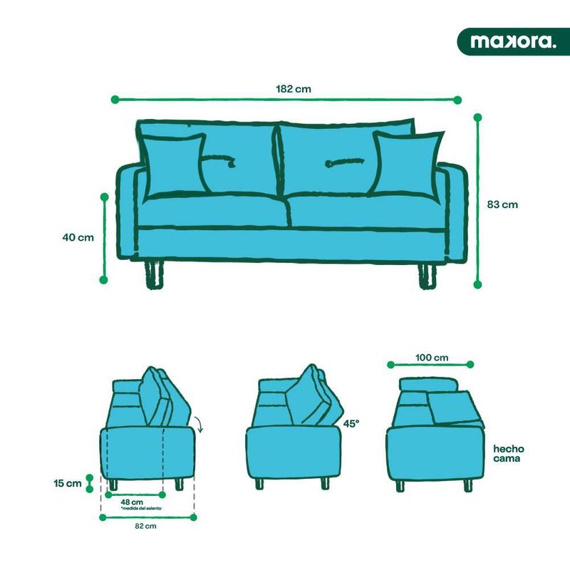 MueblesSalaSillones y SofásSofá Cama Makora Encore Con Memory Foam, Color Chocolate, Lino Respaldo Reclinable De 3 posiciones.