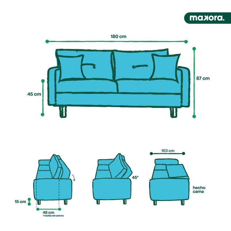 Sofá Cama Makora Ilios Con Memory Foam, Color Gris Oxford, Velvet Respaldo Reclinable De 3 posiciones.