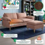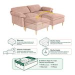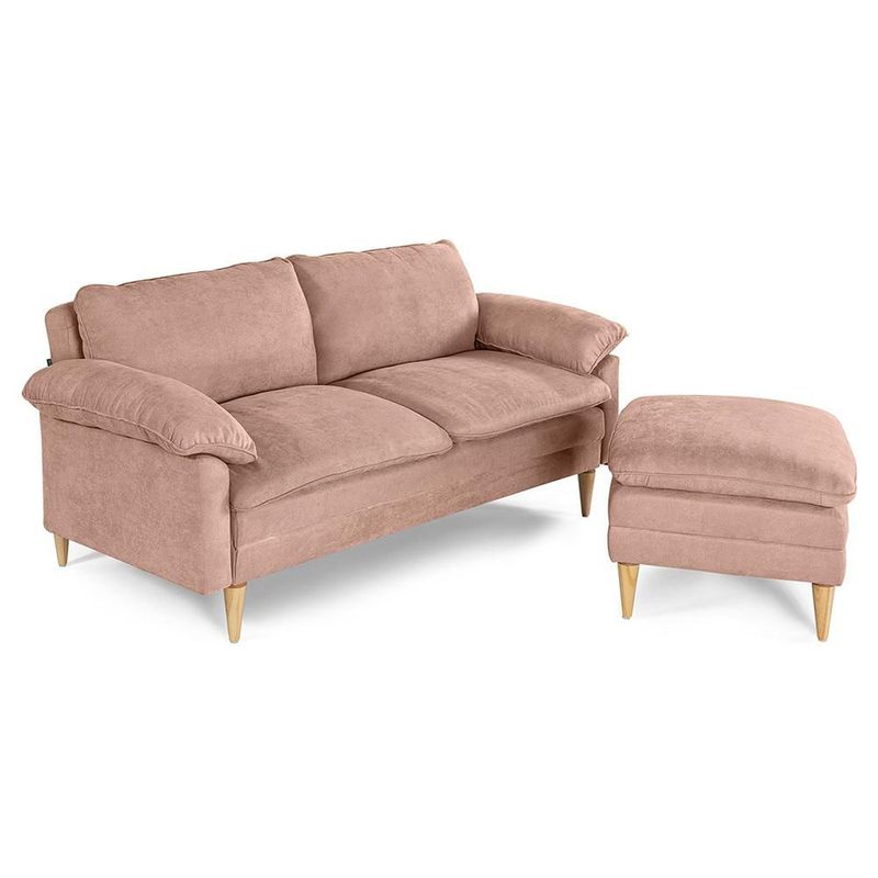 Sofa Cama Remmy Makora Rosa Con Memory Foam Respaldo Reclinable de 3 Posiciones Taburete Independiente