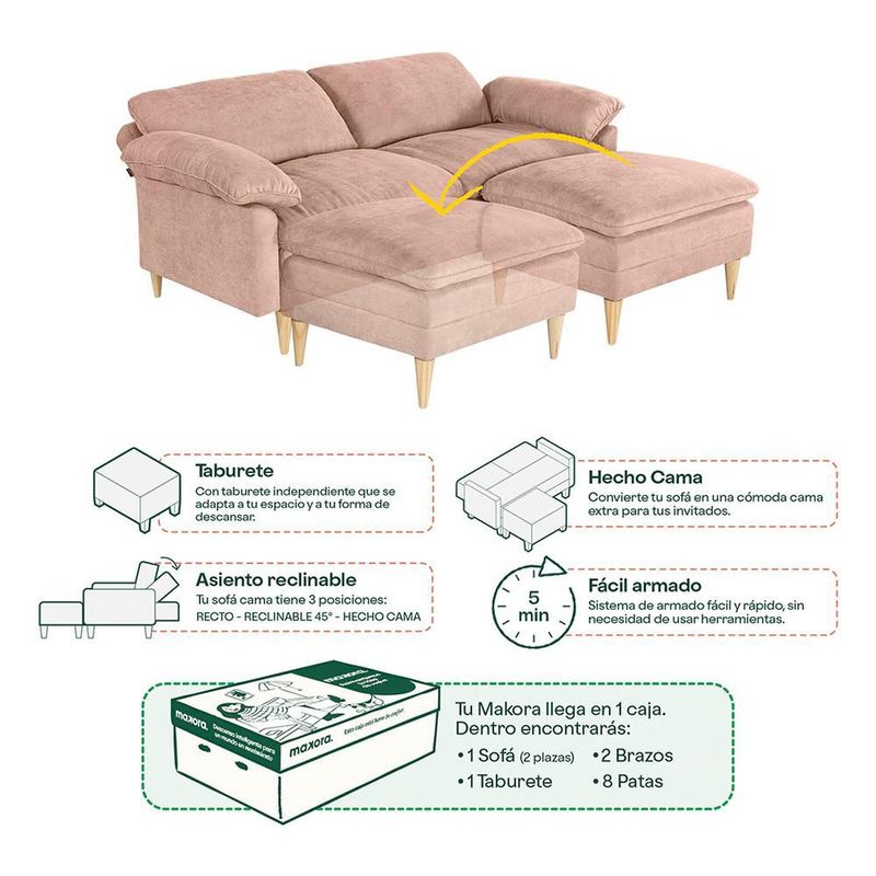 MueblesSalaSillones y SofásSofa Cama Remmy Makora Rosa Con Memory Foam Respaldo Reclinable de 3 Posiciones Taburete Independiente