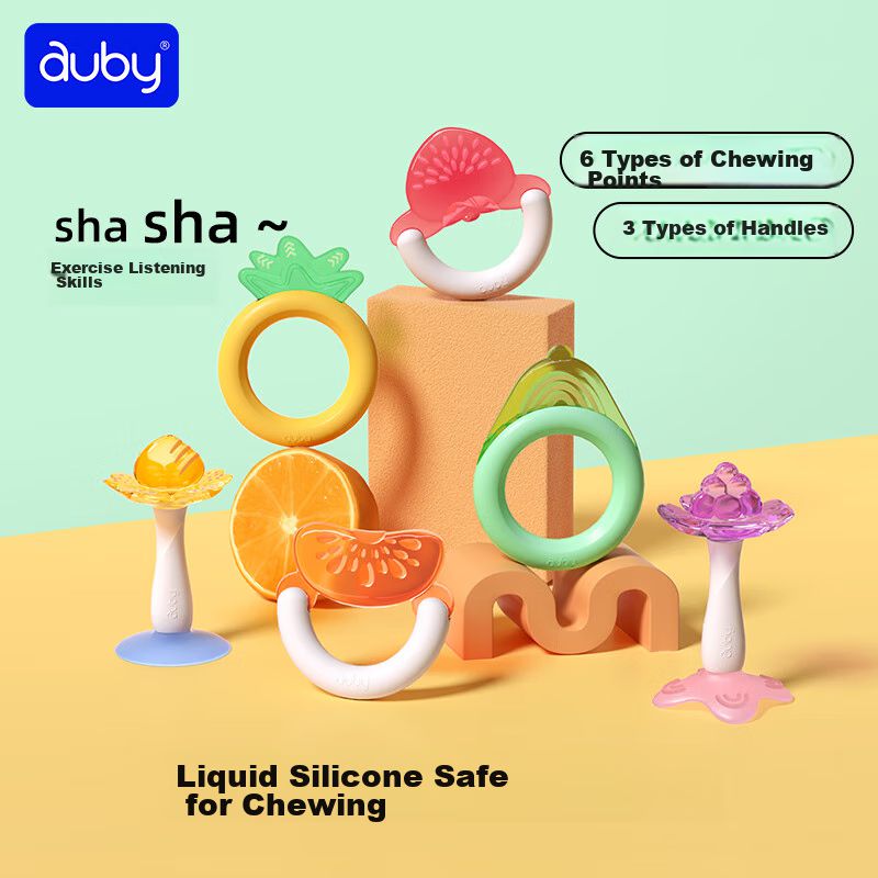 Sonajero y mordedor AUBY Set Deluxe de gelatina 6 piezas para bebés de 0 a 6 meses