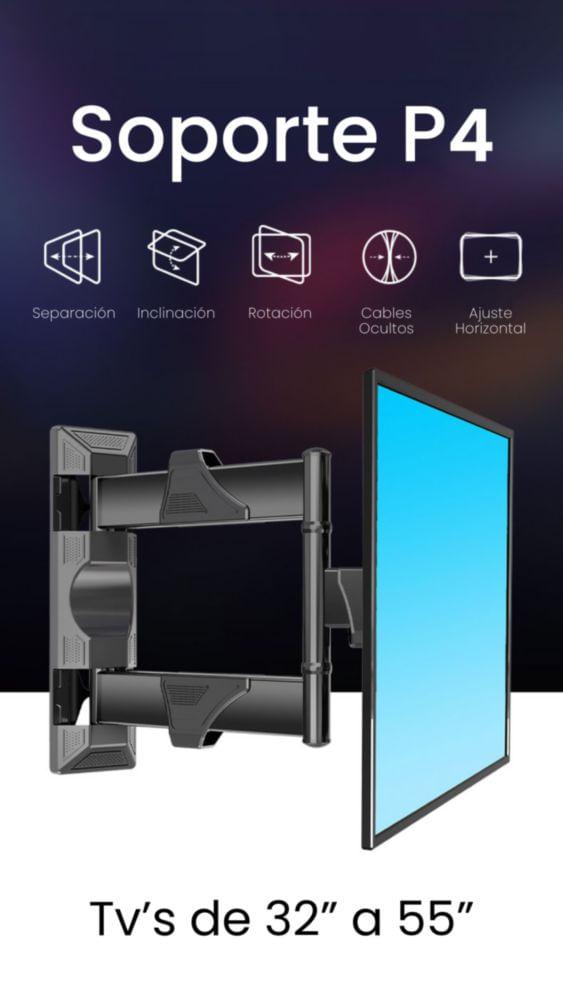 ElectrónicaAccesorios para electrónicaSoportesSoporte de Pared Articulado para Pantalla de 32–55” | Ajustable y Reforzado