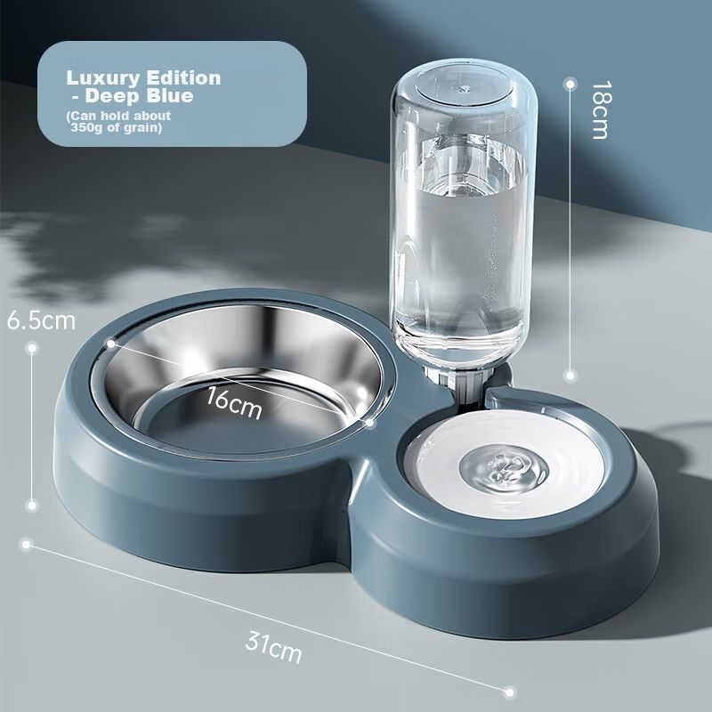SWEET WAVES Comedero Automático Doble de Acero Inoxidable con Dispensador de Agua 550 ml