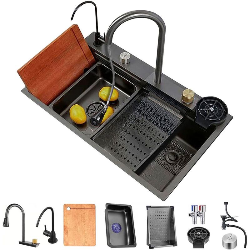 HerramientasPlomeríaLlaves y RegaderasTarja de cocina de acero inoxidable con múltiples accesorios 80x45 cm