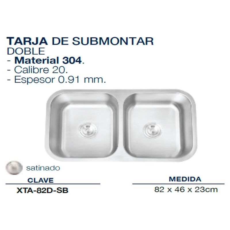 HogarBañoGriferíaTarja Submontar Doble 82x46x23cm Alfa Satinada Calibre 20
