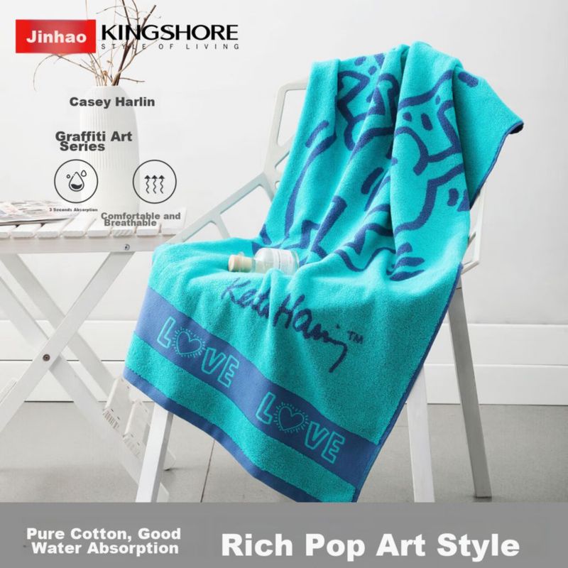 HogarBañoToallasToalla de baño con estampado grafiti Azul KINGSHORE