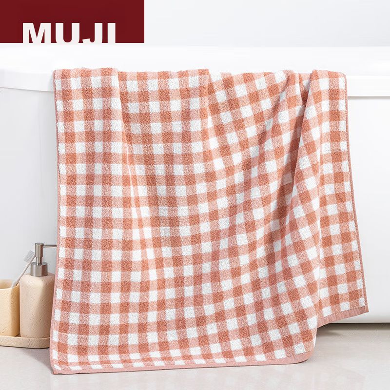 Toalla de baño de cuadros 140x70cm Rosa MUJI