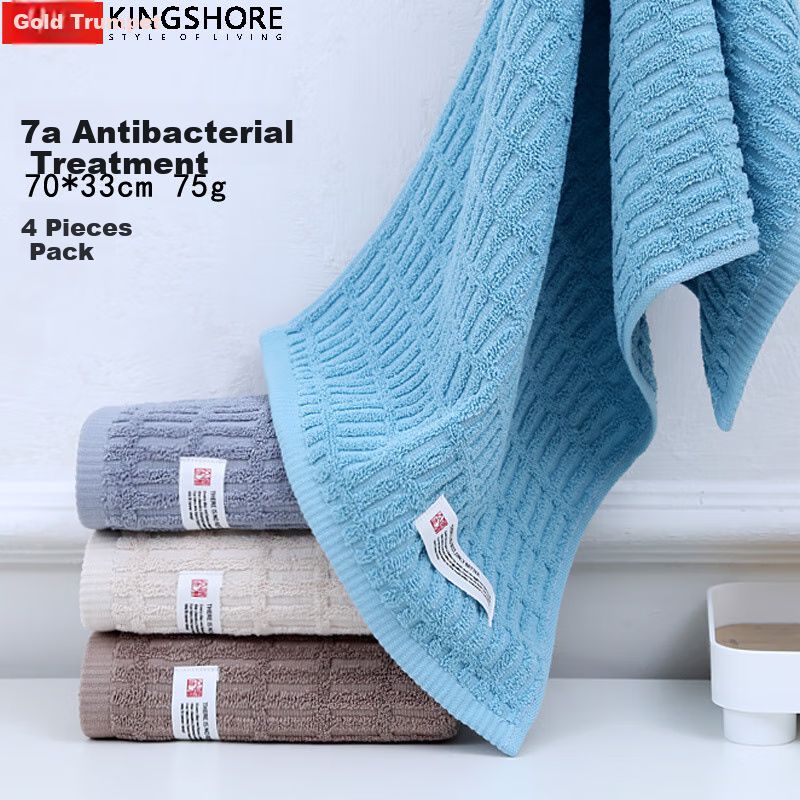 Toalla Facial King Shore 70X33Cm Algodón Amarillo 4 Piezas Antibacteriana