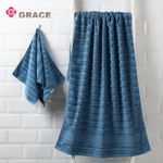 Toalla Grace Algodón 100% 70X140Cm Azul Y 34X74Cm Set 2Pzas