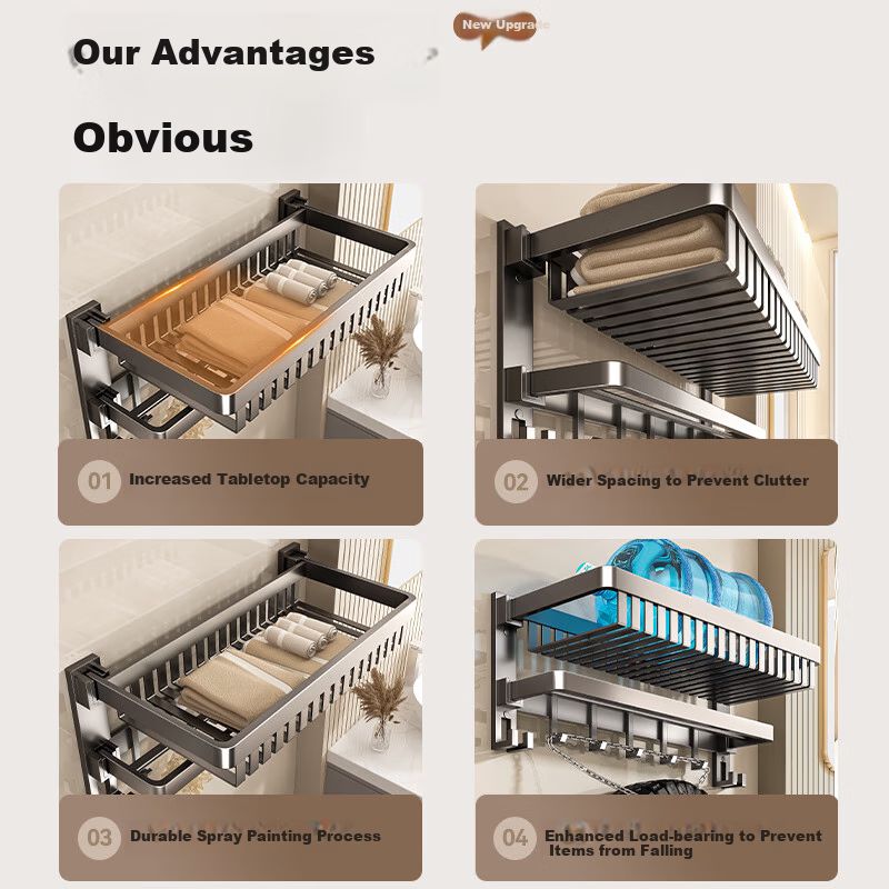 Toallero Baihan Organizador Baño Gunmetal Sin Taladro