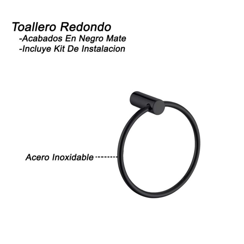 Toallero Redondo Baño Negro Mate Acero Inoxidable Rubinett