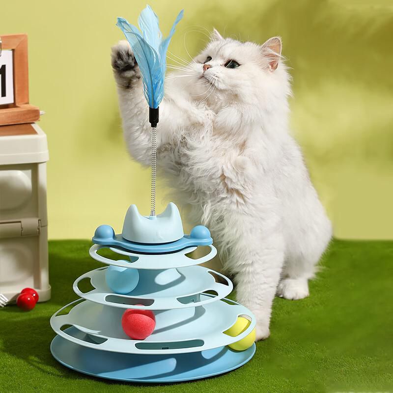 MascotasGatosJuguetesTorre Giratoria Interactiva para Gatos 3 Niveles