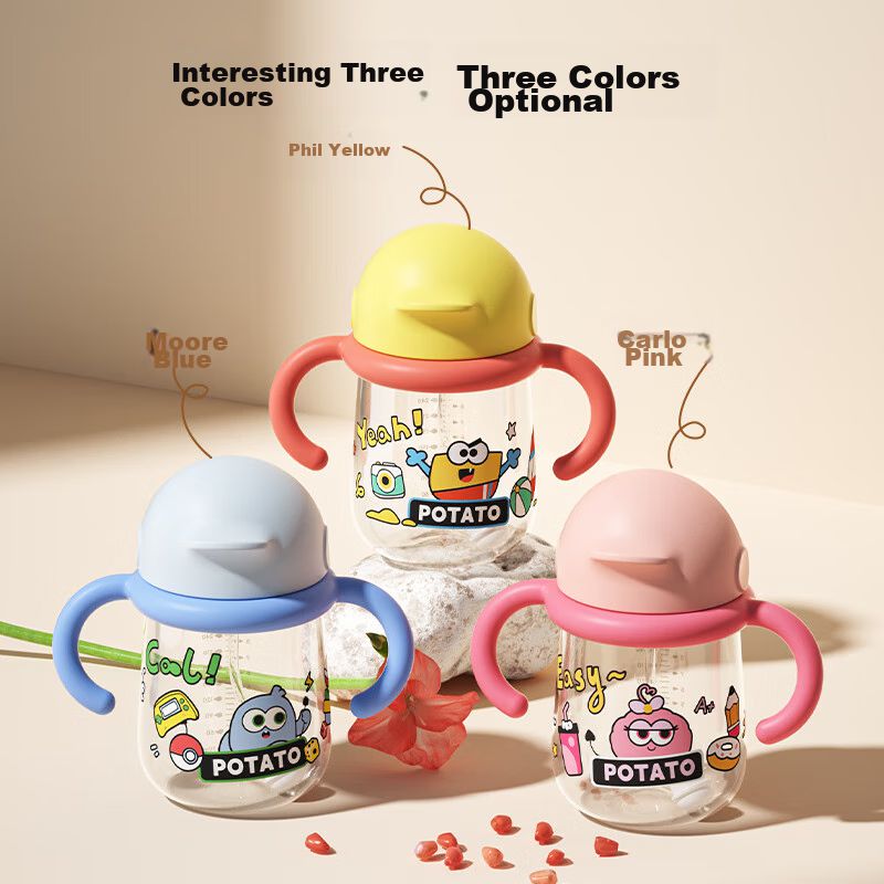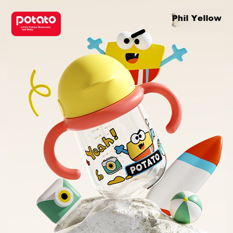 Vaso Para Niños Potato Tritán Con Asa Y Popote Amarillo